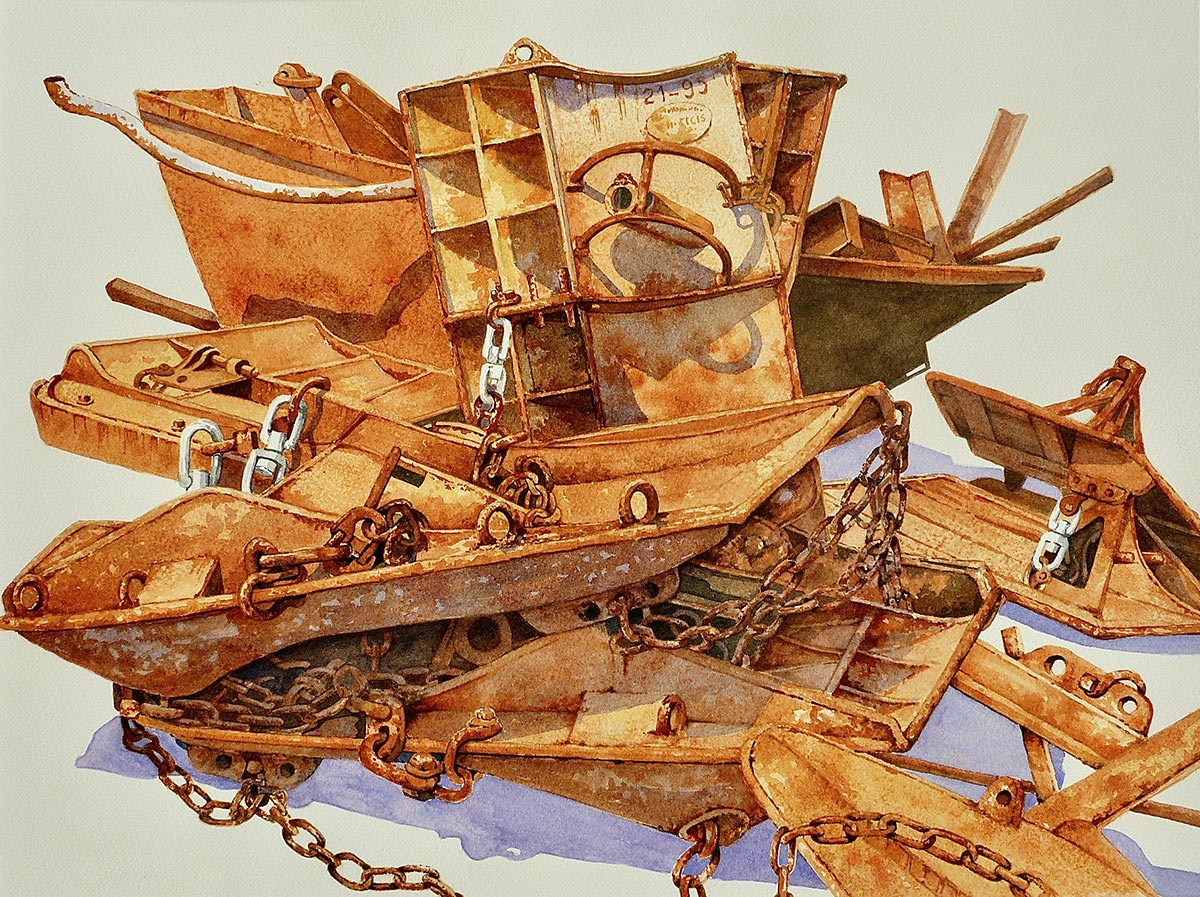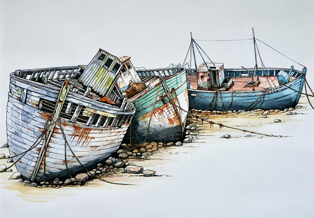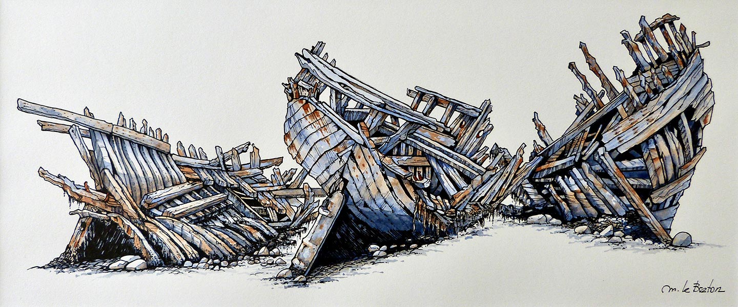 D’aussi loin qu’il se souvienne, Maurice LE BRETON a toujours dessiné. Le port de Concarneau et ses bateaux sont une source inépuisable pour les artistes qui posent leurs chevalets sur les quais et pour lui un émerveillement de les voir travailler. Après des approches dans différents médiums, il s’est définitivement tourné vers l’aquarelle pour son côté magique, son atmosphère et sa transparence.